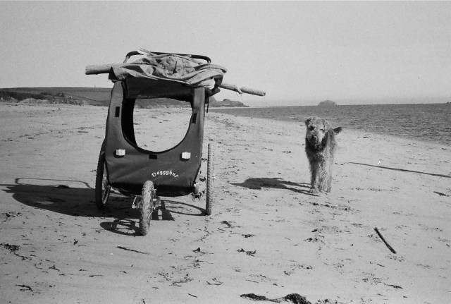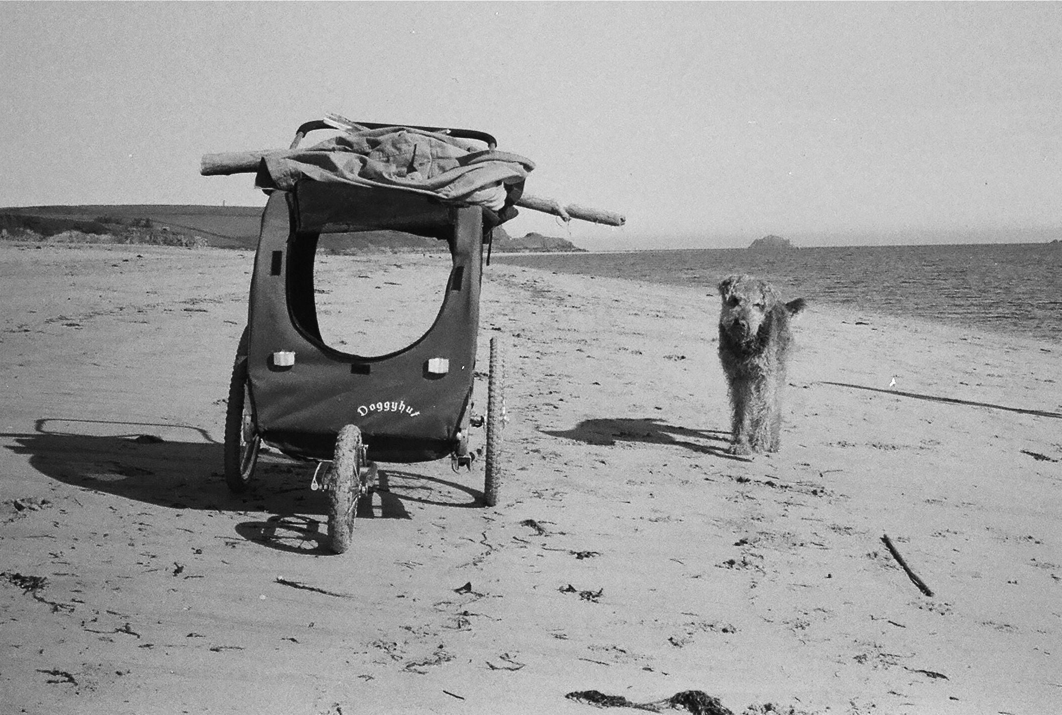 Some months before her death she was presented with a three wheel Dog Buggy. It raised a few eyebrows in Padstow, but arthritis had taken hold and the short walks to the beach to be with her friends Skye, Rosie, Daisy, Macie, Jo, Matilda, and Rio had become something of a marathon. Reluctant to get in at first, perhaps embarrassed to be perceived as an invalid, she nevertheless grew to appreciate the red canvas buggy, and would clamber in, even as it was being assembled.