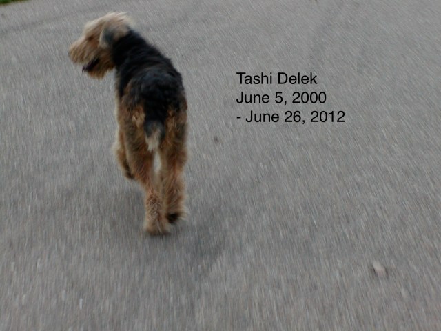 Tashi Delek, the most photographed Airedale Terrier in Cornwall, died peacefully on the settee, in the living room of her home in Padstow.Tashi, or Tash, or Snoo as she was known to Kim and myself was born in Grantham. She was the last of a litter of nine puppies to find a home, passed over repeatedly due to the straightness of her coat, that Kim and I were told, would not go down well with dog show judges. Kim and I looked at each other. As if!