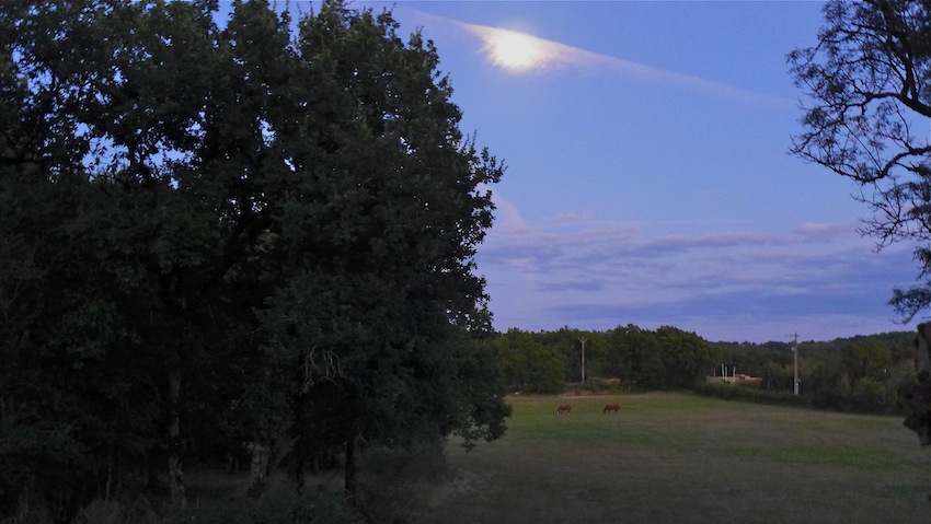 On an early evening drive, the time of day when the colours are so saturated you almost want time to stand still, we stumbled upon the delightful hilltop town of Montpezay de Quercy. Our road passed some of the most manicured vineyards and timber forests I have seen. The mansions are impressive too, and the area, only ten or twelve miles north west of Causade speaks of money. We are all taken with the tall villa homes at the edge of the town, with views right across that sublime valley.