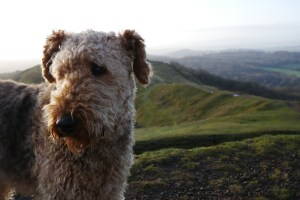 To get our bearings, and see if Asta has a taste for vertginous open terrain, we took the advice of some dog walkers (always reliable sources of information) and followed the A449 a couple of miles south along the eastern fringe of the hills to British Camp Hill Fort an Iron Age site close to the village of Colwall. The car park charge £4.30 for a full day and across the road a popular cafe called Sally’s Place serves date flapjacks and sloe gin and lime and coconut liqueur ice creams. Around back the public loos boast some of the best views in the region.